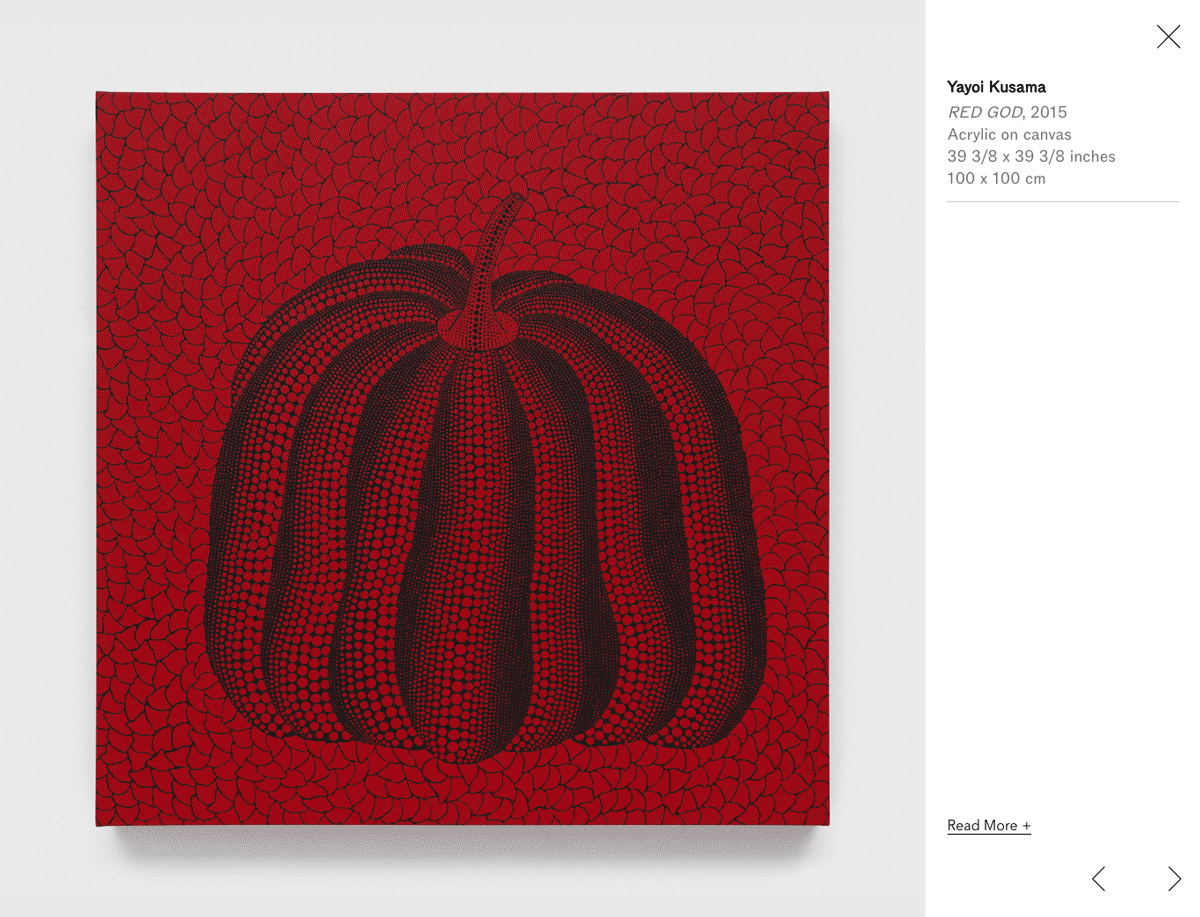 Figure 5. Artwork detail page for Yayoi Kusama's 'RED GOD' (2015), accessed June 17, 2020.