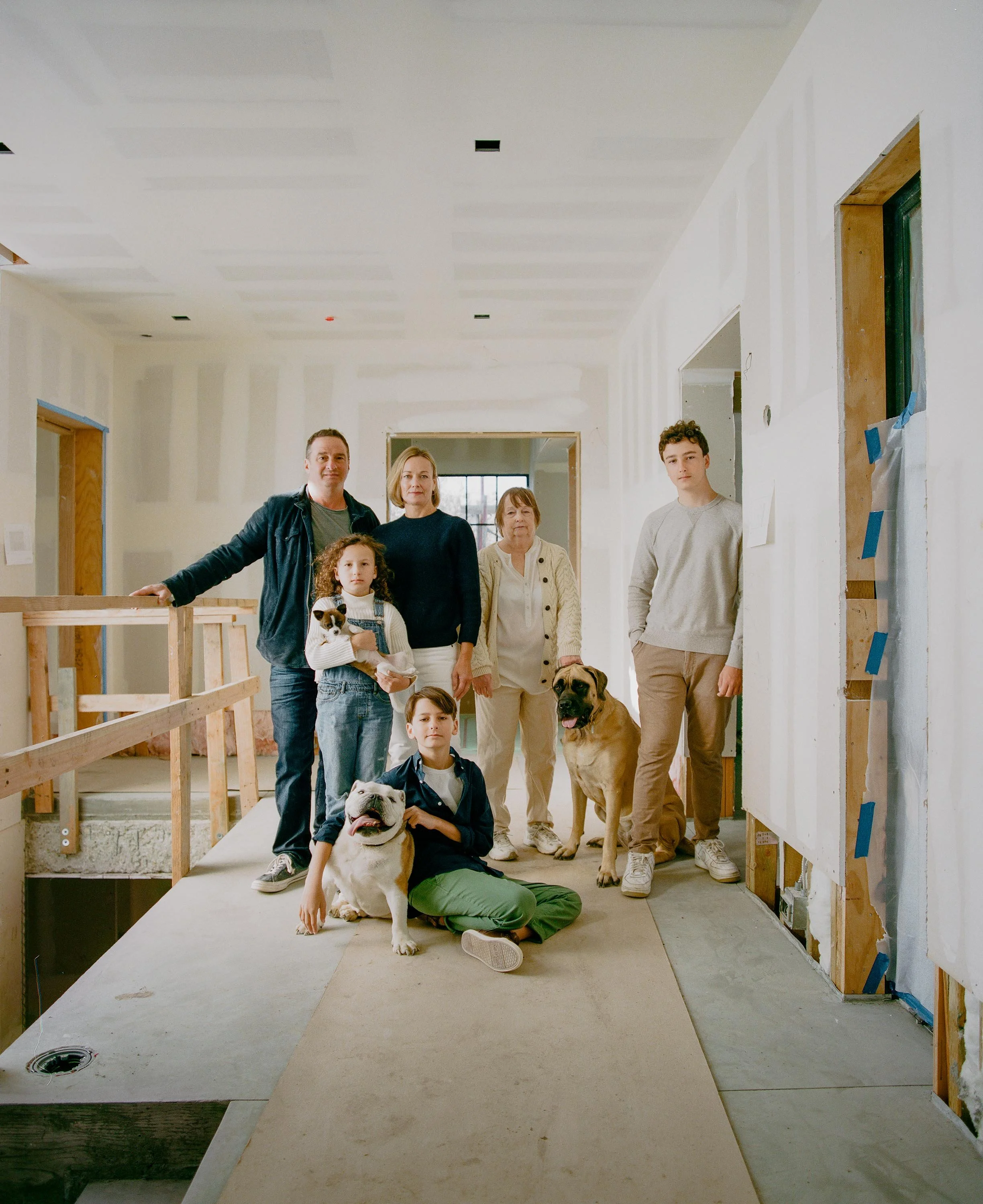 Figure 4. The Graulich Family inside of their future home in Malibu, California, under construction after the devastating Woolsey Fire. Photo by Emanuel Hahn.